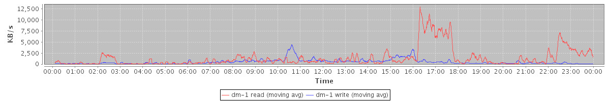 avg(dm-0 read) = 15.41 avg(dm-0 write) = 1.70