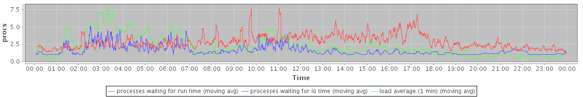 avg(processes waiting for run time) = 2.58 avg(processes waiting for io time) = 0.95 avg(load average (1 min)) = 2.19