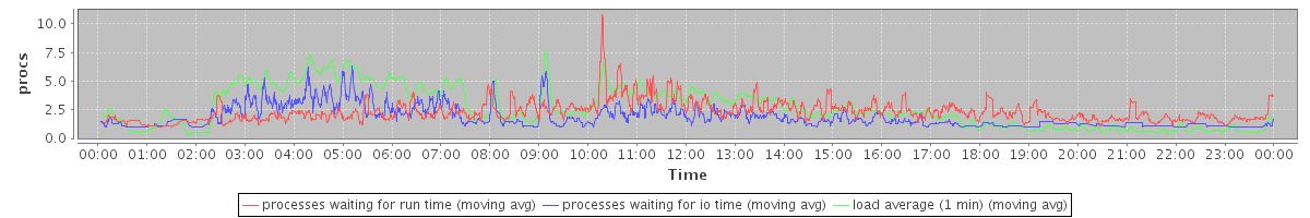 avg(processes waiting for run time) = 1.82 avg(processes waiting for io time) = 1.26 avg(load average (1 min)) = 2.66