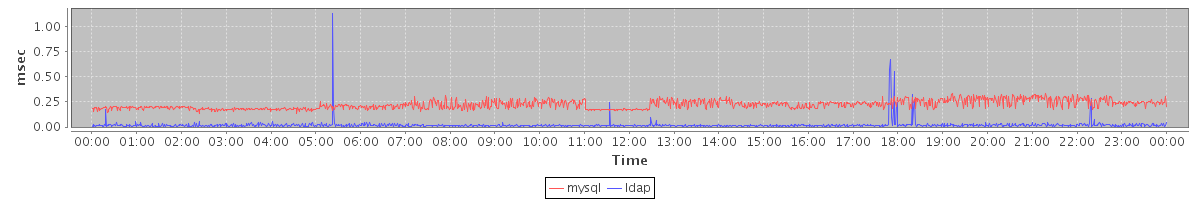 avg(mysql) = 0.22 avg(ldap) = 0.02