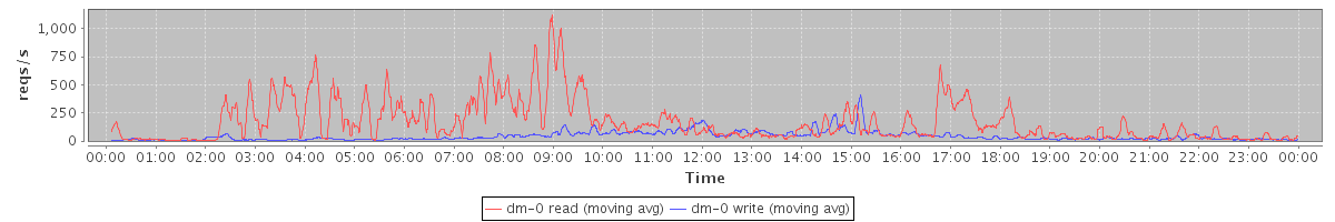 avg(dm-1 read) = 0.37 avg(dm-1 write) = 462.42