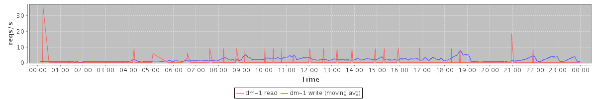 avg(dm-1 read) = 0.09 avg(dm-1 write) = 1.93