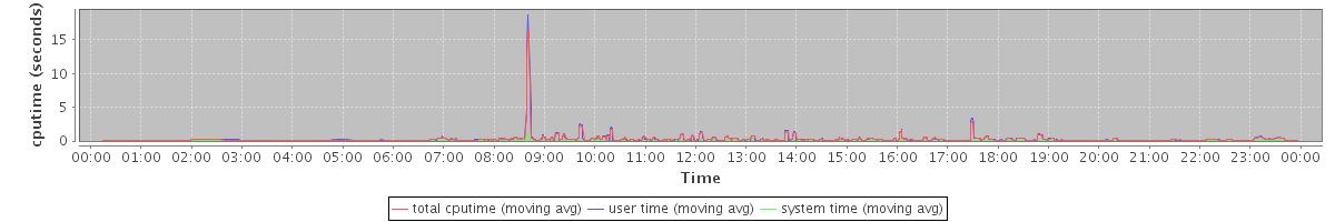 avg(mysqld) = 400.04 avg(yum) = 1802.00 avg(mysqldump) = 264.47 avg(zmmailboxd) = 3074.46 avg(tripwire) = 770.00 avg(updatedb) = 30.59 avg(java) = 714.96 avg(gzip) = 2778.36 avg(horsewatcher-fe) = 20.95 avg(zmcompresslogs) = 1747.33