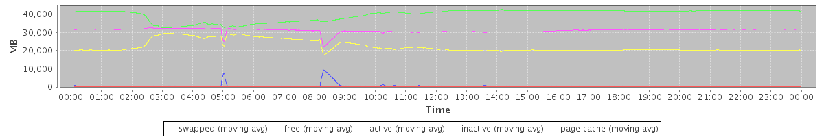 avg(swapped) = 18.18 avg(free) = 610.54 avg(active) = 39627.31 avg(inactive) = 22255.63 avg(page cache) = 31070.01