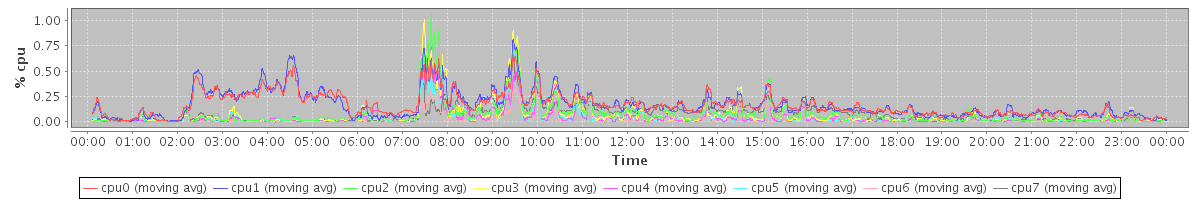 avg(cpu0) = 0.16 avg(cpu1) = 0.17 avg(cpu2) = 0.07 avg(cpu3) = 0.07 avg(cpu4) = 0.04 avg(cpu5) = 0.05 avg(cpu6) = 0.02 avg(cpu7) = 0.07