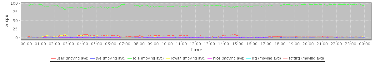 avg(user) = 4.30 avg(sys) = 0.53 avg(idle) = 92.79 avg(iowait) = 2.32 avg(nice) = 0.00 avg(irq) = 0.00 avg(softirq) = 0.06