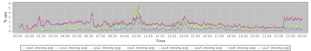 avg(cpu0) = 1.55 avg(cpu1) = 1.47 avg(cpu2) = 0.86 avg(cpu3) = 0.80 avg(cpu4) = 0.59 avg(cpu5) = 0.55 avg(cpu6) = 0.56 avg(cpu7) = 0.35