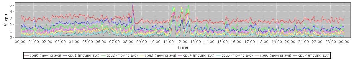 avg(cpu0) = 0.57 avg(cpu1) = 0.26 avg(cpu2) = 0.37 avg(cpu3) = 0.09 avg(cpu4) = 0.30 avg(cpu5) = 0.05 avg(cpu6) = 0.08 avg(cpu7) = 0.03
