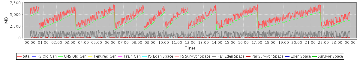 avg(total) = 4514.23 avg(PS Old Gen) = 0.00 avg(CMS Old Gen) = 3603.71 avg(Tenured Gen) = 0.00 avg(Train Gen) = 0.00 avg(PS Eden Space) = 0.00 avg(PS Survivor Space) = 0.00 avg(Par Eden Space) = 799.65 avg(Par Survivor Space) = 110.87 avg(Eden Space) = 0.00 avg(Survivor Space) = 0.00