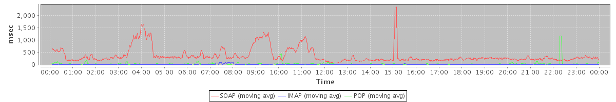 Host zm21.stanford.edu: Mailboxd: Response Time by Client Protocol