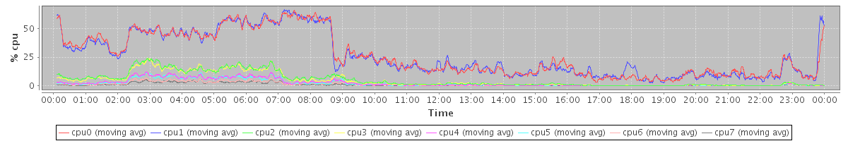 avg(cpu0) = 1.79 avg(cpu1) = 1.79 avg(cpu2) = 1.11 avg(cpu3) = 1.07 avg(cpu4) = 0.74 avg(cpu5) = 0.71 avg(cpu6) = 0.64 avg(cpu7) = 0.42
