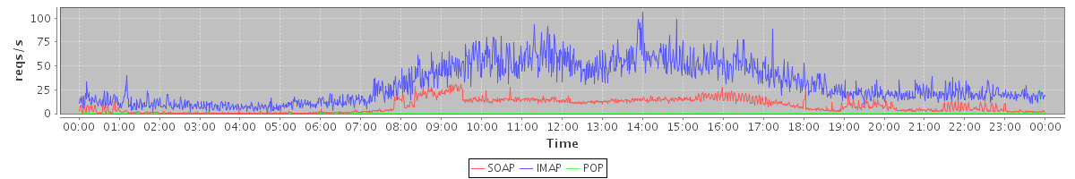 Host zm21.stanford.edu: Mailboxd: Request Rate by Client Protocol