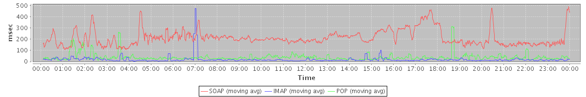 Host zm01.stanford.edu: Mailboxd: Response Time by Client Protocol