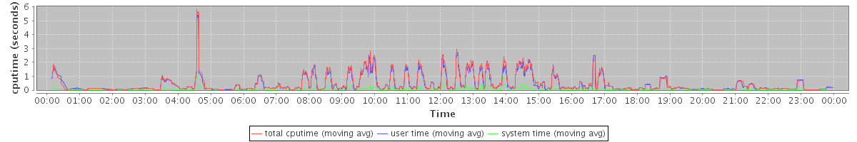 avg(total cputime) = 0.35 avg(user time) = 0.32 avg(system time) = 0.03