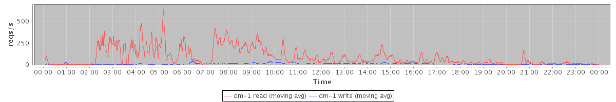 avg(dm-2 read) = 594.09 avg(dm-2 write) = 1643.77