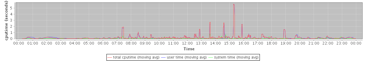 avg(total cputime) = 0.09 avg(user time) = 0.08 avg(system time) = 0.01