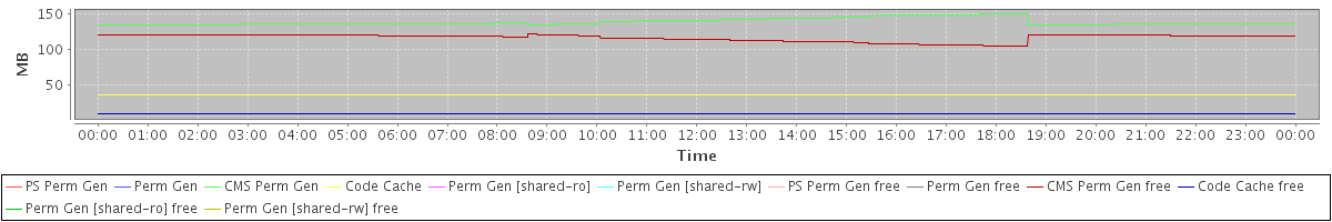 avg(PS Perm Gen) = 0.00 avg(Perm Gen) = 0.00 avg(CMS Perm Gen) = 139.19 avg(Code Cache) = 36.46 avg(Perm Gen [shared-ro]) = 0.00 avg(Perm Gen [shared-rw]) = 0.00 avg(PS Perm Gen free) = 0.00 avg(Perm Gen free) = 0.00 avg(CMS Perm Gen free) = 116.81 avg(Code Cache free) = 10.11 avg(Perm Gen [shared-ro] free) = 0.00 avg(Perm Gen [shared-rw] free) = 0.00