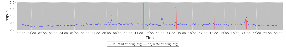 avg(sdj read) = 0.34 avg(sdj write) = 38.74