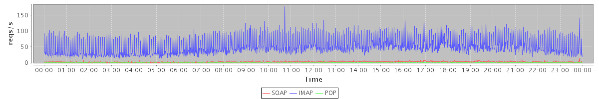 Host zm09.stanford.edu: Mailboxd: Request Rate by Client Protocol