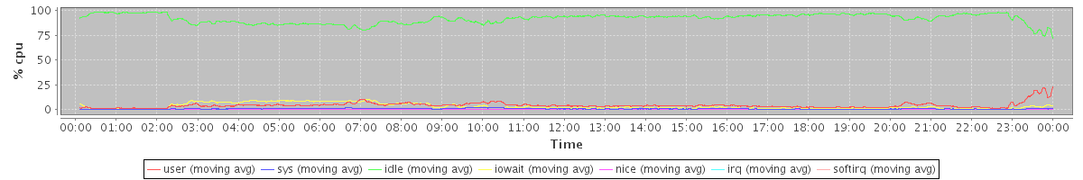 avg(user) = 4.15 avg(sys) = 0.62 avg(idle) = 91.94 avg(iowait) = 3.20 avg(nice) = 0.00 avg(irq) = 0.00 avg(softirq) = 0.09