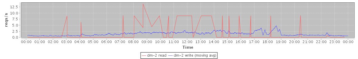 avg(dm-2 read) = 0.06 avg(dm-2 write) = 1.47
