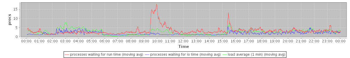 avg(processes waiting for run time) = 3.02 avg(processes waiting for io time) = 1.28 avg(load average (1 min)) = 2.62