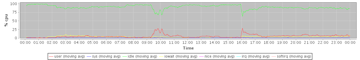 avg(user) = 5.58 avg(sys) = 0.51 avg(idle) = 90.58 avg(iowait) = 3.26 avg(nice) = 0.00 avg(irq) = 0.00 avg(softirq) = 0.06