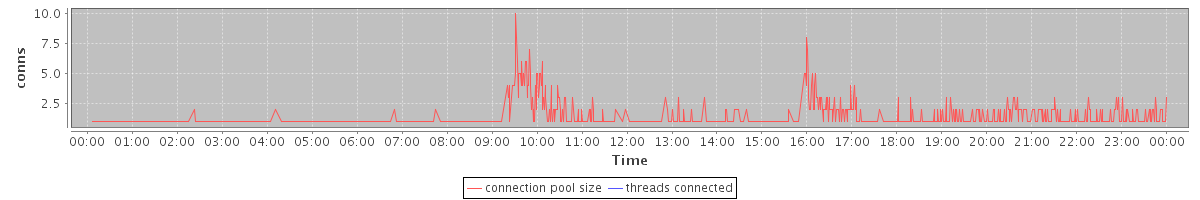 avg(connection pool size) = 0.81 avg(threads connected) = 0.00