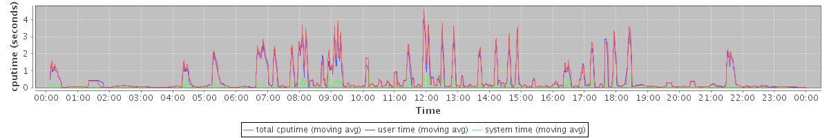 avg(total cputime) = 0.33 avg(user time) = 0.29 avg(system time) = 0.03
