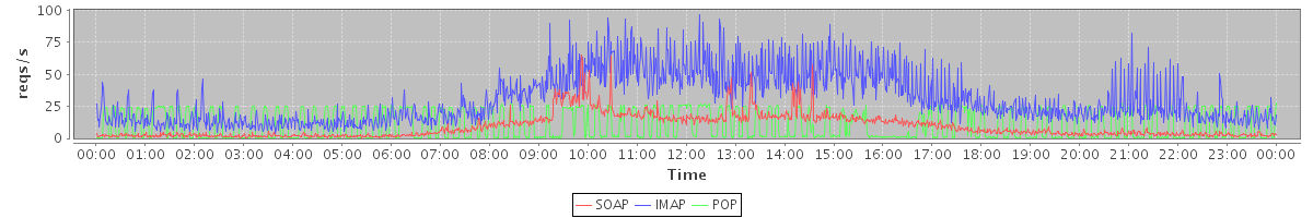 Host zm04.stanford.edu: Mailboxd: Request Rate by Client Protocol