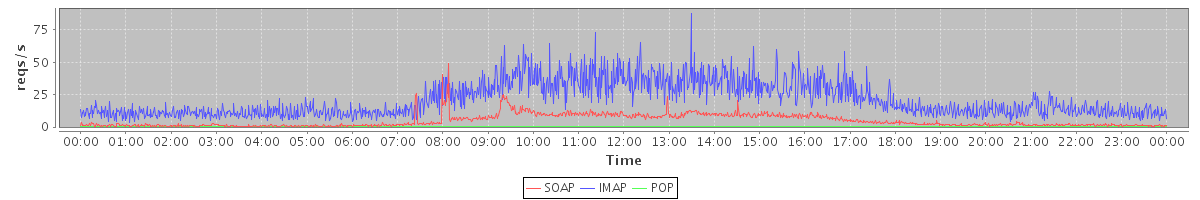 Host zm21.stanford.edu: Mailboxd: Request Rate by Client Protocol