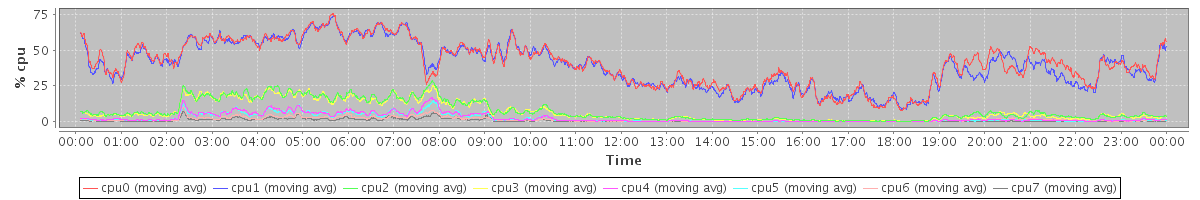 avg(cpu0) = 0.34 avg(cpu1) = 0.31 avg(cpu2) = 0.06 avg(cpu3) = 0.06 avg(cpu4) = 0.03 avg(cpu5) = 0.03 avg(cpu6) = 0.17 avg(cpu7) = 0.01