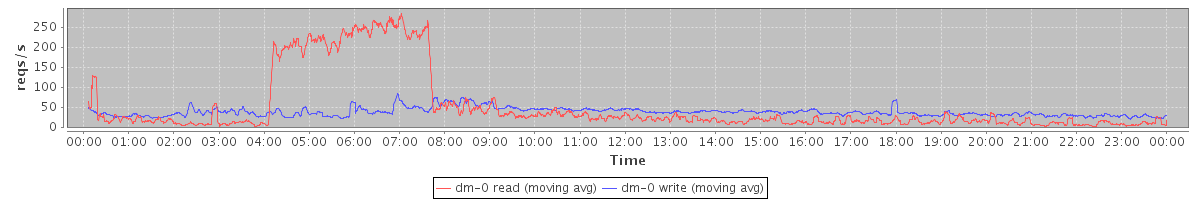 avg(dm-1 read) = 3272.43 avg(dm-1 write) = 125.29