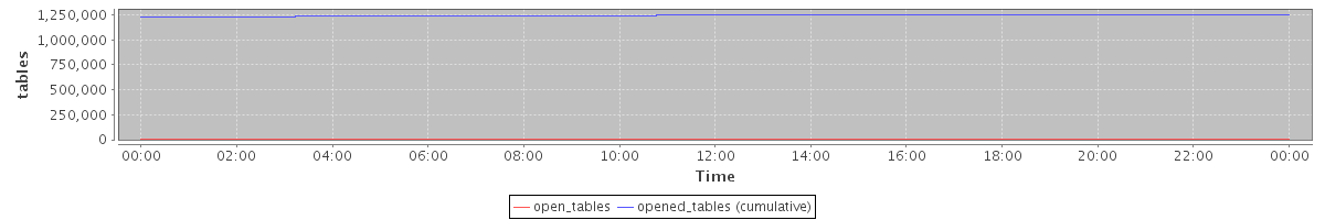 avg(open_tables) = 1193.71 avg(opened_tables (cumulative)) = 1244366.95