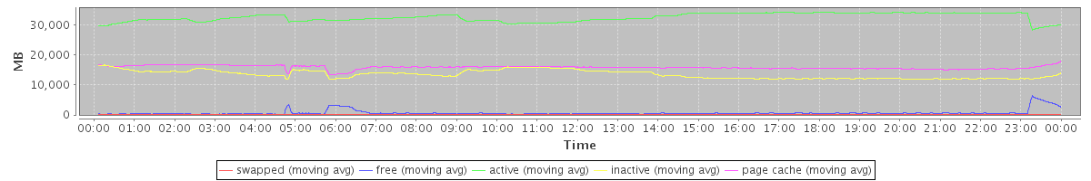 avg(swapped) = 44.45 avg(free) = 666.06 avg(active) = 32607.64 avg(inactive) = 13527.83 avg(page cache) = 15896.07