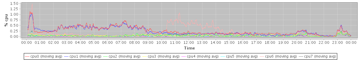 avg(cpu0) = 0.25 avg(cpu1) = 0.23 avg(cpu2) = 0.04 avg(cpu3) = 0.04 avg(cpu4) = 0.02 avg(cpu5) = 0.02 avg(cpu6) = 0.17 avg(cpu7) = 0.02