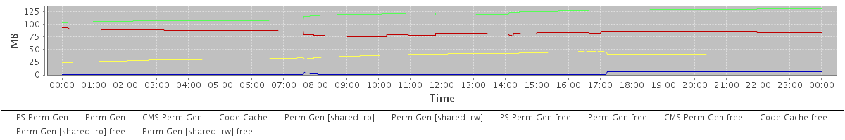 avg(PS Perm Gen) = 0.00 avg(Perm Gen) = 0.00 avg(CMS Perm Gen) = 119.44 avg(Code Cache) = 37.10 avg(Perm Gen [shared-ro]) = 0.00 avg(Perm Gen [shared-rw]) = 0.00 avg(PS Perm Gen free) = 0.00 avg(Perm Gen free) = 0.00 avg(CMS Perm Gen free) = 84.35 avg(Code Cache free) = 2.09 avg(Perm Gen [shared-ro] free) = 0.00 avg(Perm Gen [shared-rw] free) = 0.00