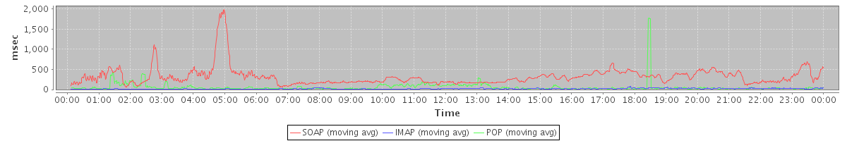 avg(SOAP) = 10.46 avg(IMAP) = 34.80 avg(POP) = 0.38