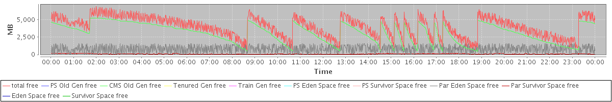 avg(total free) = 4003.27 avg(PS Old Gen free) = 0.00 avg(CMS Old Gen free) = 3105.32 avg(Tenured Gen free) = 0.00 avg(Train Gen free) = 0.00 avg(PS Eden Space free) = 0.00 avg(PS Survivor Space free) = 0.00 avg(Par Eden Space free) = 811.96 avg(Par Survivor Space free) = 85.98 avg(Eden Space free) = 0.00 avg(Survivor Space free) = 0.00
