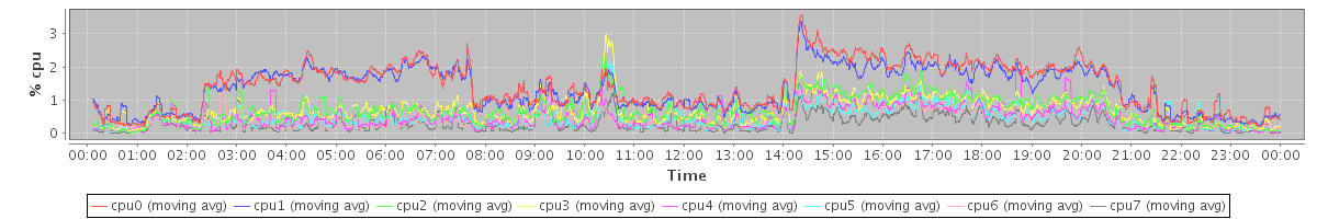 avg(cpu0) = 0.25 avg(cpu1) = 0.23 avg(cpu2) = 0.06 avg(cpu3) = 0.06 avg(cpu4) = 0.04 avg(cpu5) = 0.04 avg(cpu6) = 0.11 avg(cpu7) = 0.02