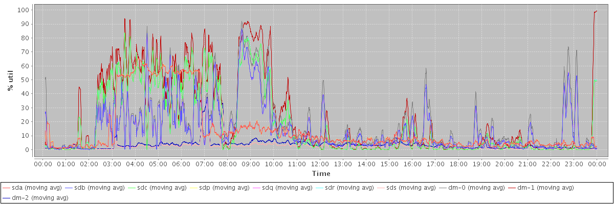 avg(sda) = 14.53 avg(sdb) = 14.69 avg(sdc) = 17.78 avg(sdp) = 14.54 avg(sdq) = 14.71 avg(sdr) = 17.79 avg(sds) = 2.36 avg(dm-0) = 17.75 avg(dm-1) = 22.53 avg(dm-2) = 3.46
