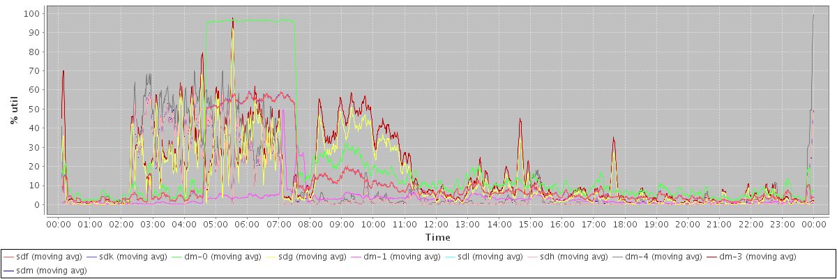 avg(sdf) = 11.83 avg(sdk) = 11.85 avg(dm-0) = 20.39 avg(sdg) = 13.45 avg(dm-1) = 2.98 avg(sdl) = 13.44 avg(sdh) = 8.17 avg(dm-4) = 10.72 avg(dm-3) = 16.12 avg(sdm) = 8.16