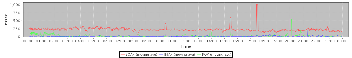 Host zm05.stanford.edu: Mailboxd: Response Time by Client Protocol