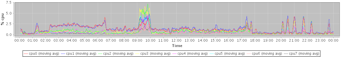 avg(cpu0) = 0.17 avg(cpu1) = 0.20 avg(cpu2) = 0.08 avg(cpu3) = 0.09 avg(cpu4) = 0.04 avg(cpu5) = 0.05 avg(cpu6) = 0.03 avg(cpu7) = 0.02