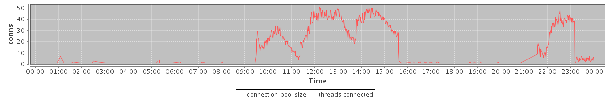 avg(connection pool size) = 10.42 avg(threads connected) = 0.00