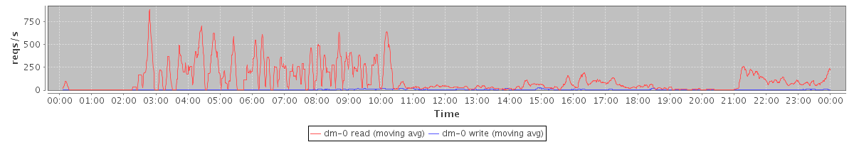 avg(dm-1 read) = 0.05 avg(dm-1 write) = 0.65