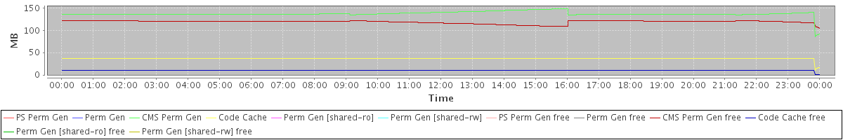 avg(PS Perm Gen) = 0.00 avg(Perm Gen) = 0.00 avg(CMS Perm Gen) = 137.04 avg(Code Cache) = 36.61 avg(Perm Gen [shared-ro]) = 0.00 avg(Perm Gen [shared-rw]) = 0.00 avg(PS Perm Gen free) = 0.00 avg(Perm Gen free) = 0.00 avg(CMS Perm Gen free) = 118.59 avg(Code Cache free) = 9.88 avg(Perm Gen [shared-ro] free) = 0.00 avg(Perm Gen [shared-rw] free) = 0.00