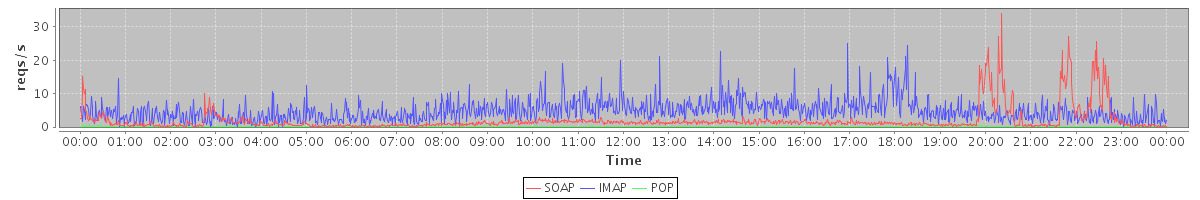 Host zm21.stanford.edu: Mailboxd: Request Rate by Client Protocol
