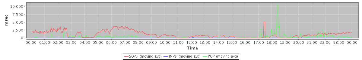 Host zm06.stanford.edu: Mailboxd: Response Time by Client Protocol