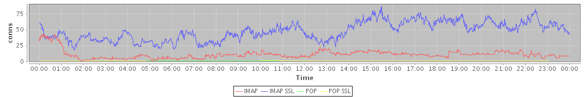 avg(IMAP) = 11.10 avg(IMAP SSL) = 47.44 avg(POP) = 0.01 avg(POP SSL) = 0.03